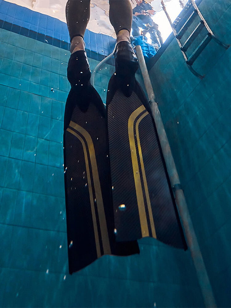 - Carbon and fibreglass and silicone freediving fins